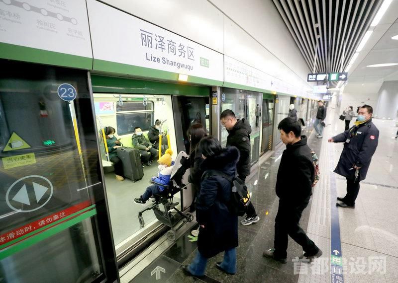 京港地铁16号线丽泽商务区站内,乘客正有序登上地铁车厢 ■记者 周宇杰/摄
