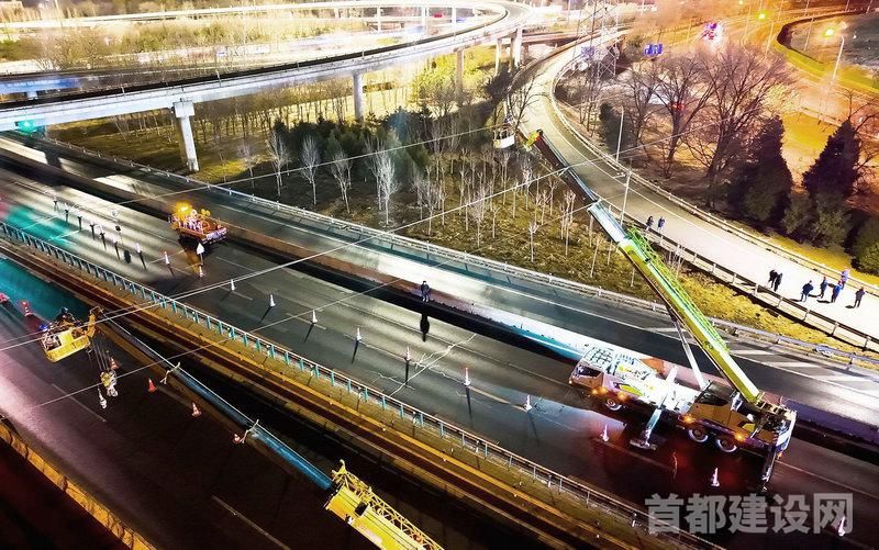 国网北京海淀供电公司学院路北端220及110千伏架空线迁改工程夜间施工现场 ■通讯员 王洋/摄
