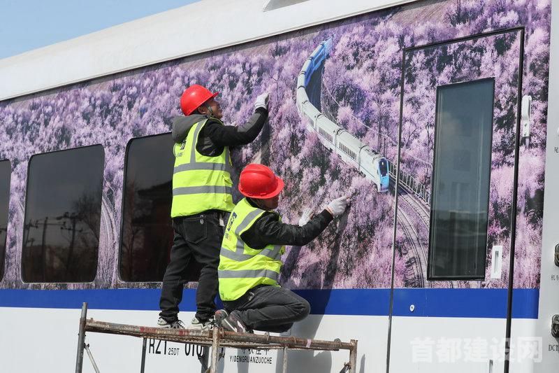 每年暖春花开时节,“开往春天的列车”S2线就会成为京城春日一道靓丽风景线。3月29日,记者走进北京车辆段南口车间,一列S2线列车正在进行重新涂装,漫山遍野的野桃花图案成为列车“新皮肤”。开行17载的“长城号”和谐内燃动车组实现全新涂装并上线运行。