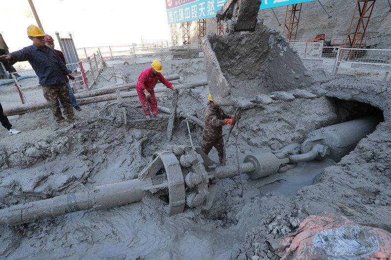 不远处,北段盾构部分管道铺设已接近尾声。铺设管道的同时,工作人员还将对已铺设部分进行探伤检查,保证工程质量。