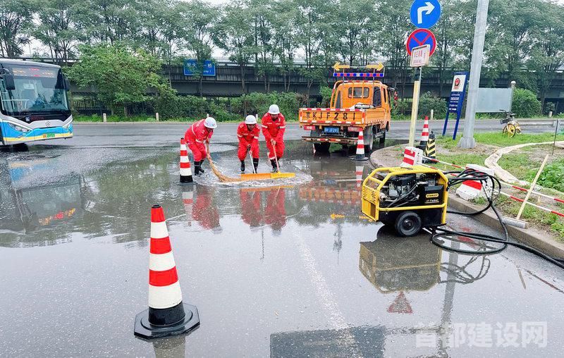 在城市街道应急防汛工作中,该队共出动抢险指挥车8台、500立方米/小时的排水泵和100立方米/小时的排水泵各10台,1000方/小时防汛应急救援车1台,并携带锥桶、沙袋等防汛物资2000多套。15时,该应急抢险大队圆满完成海淀区5个巡逻街道的防汛任务,并清理30余处积水点位的雨箅子、清理疏通管道并排除路面积水;服务保障重点道路约200公里,累计清理雨箅子1000余个,抽排积水约5000立方米,实现了服务保障区域全部平安度汛。
