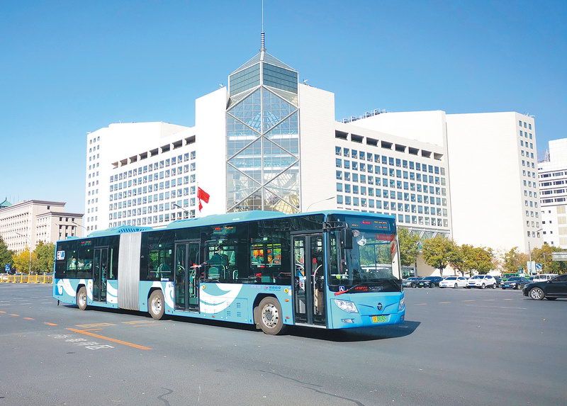 天空蓝的车身底色,白色的祥云纹络,记者日前在长安街看到了一辆52路新公交车。记者从北京公交集团获悉,随着今年年内2800余辆公交新车投入使用,车身外观将统一按照线路类型“穿衣”,增强辨识度。此外,今年底二环及副中心线路公交车新能源率将实现100%。