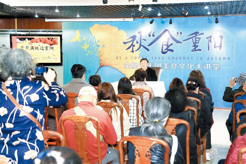 10月23日,“美食文化大讲堂”在全聚德展览馆举行。60余位市民参与,听专家解读重阳节的传统文化、跟烹饪大师学习重阳糕的制作方法。