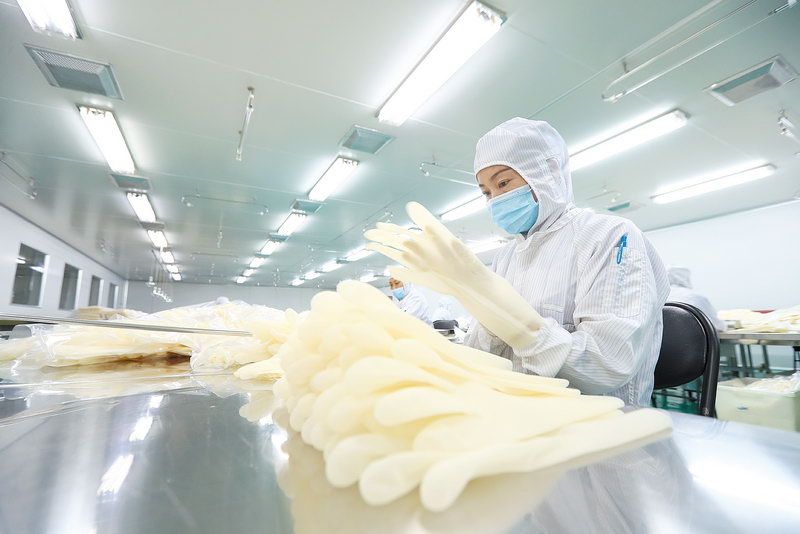 北化华腾工人生产新型高科技手套 ■记者 周宇杰/摄