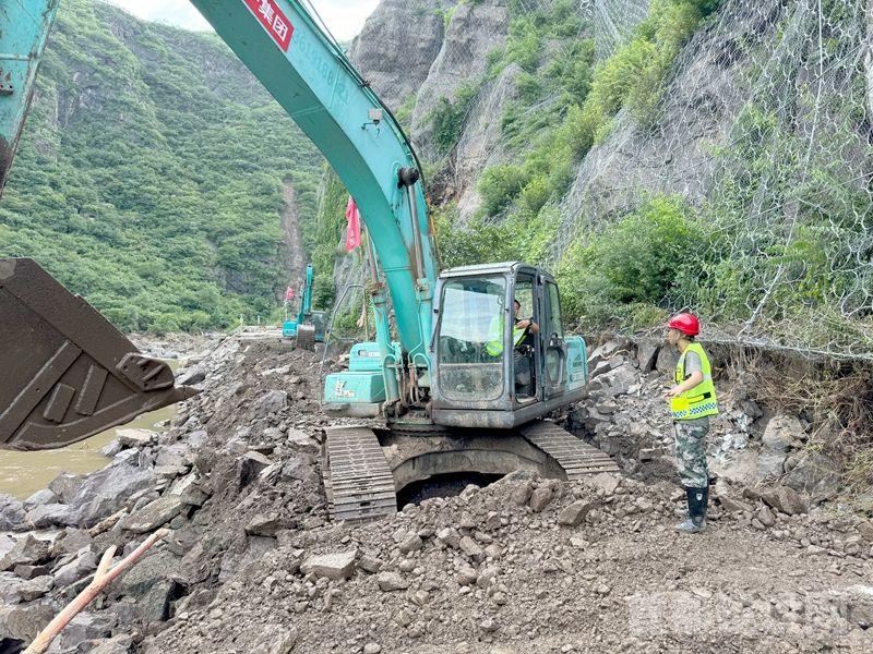 天蒙亮,在水泉子村完成抢险、转移村民后,温新泽带领抢险队员继续到四宝路K11+200、K17+400处开展抢险作业。面对大型塌方和路基掏空情况,温新泽果断制订抢险方案,优先抢通一条车道,确保抢险车辆通行。由于现场无信号,且道路两端均需要时间打通,四宝路中间这7公里灾毁情况完全未知,于是温新泽毅然选择徒步对失联段落进行情况摸排,他穿梭在泥泞道路中,雨中徒步3个小时,逐台设备指挥作业,直至到K17公里处与另一组抢险设备汇合。尽管遭遇了断电和通讯信号中断的困难,抢险工作却始终未曾停歇。温新泽组织抢险队员采取轮班交替作业的方式,确保机械设备能够不间断地进行连续抢险作业,及时保障了道路的抢通工作。