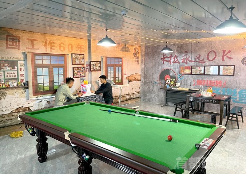 复古打卡区设置的“时光照相馆”备有工人服、军绿色背包等怀旧道具,职工可站在仿照70年代照相馆背景布前留影;休闲娱乐区不仅配备乒乓球、台球、跑步机,一台唱吧机更成了晚间“音乐会”的主角;多功能活动区则集合了象棋、围棋、图书角等功能;而由职工“自主运营”的“小卖部”零食区,则通过大白兔奶糖、北冰洋汽水等怀旧零食,勾起了职工的味蕾记忆。