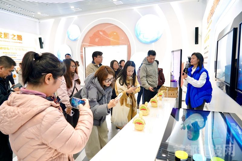 首农食品集团峪口禽业蛋鸡育种成果吸引参观者拍照。 ■记者 张军/摄