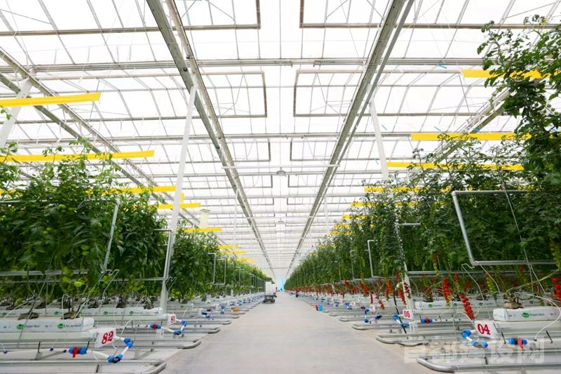 观摩会现场,首农翠湖工场的3栋应用国产化技术的验证温室,与1栋采用国外技术的对照温室并列展示,形成了直观对比。自9月25日番茄定植以来,国产系统已持续稳定运行70余天,温室内的番茄长势均衡,即将进入采收阶段,初步验证了国产系统在实际生产中的适用性。