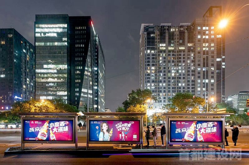 公交车站燕京啤酒宣传海报展示。 ■企业/供图