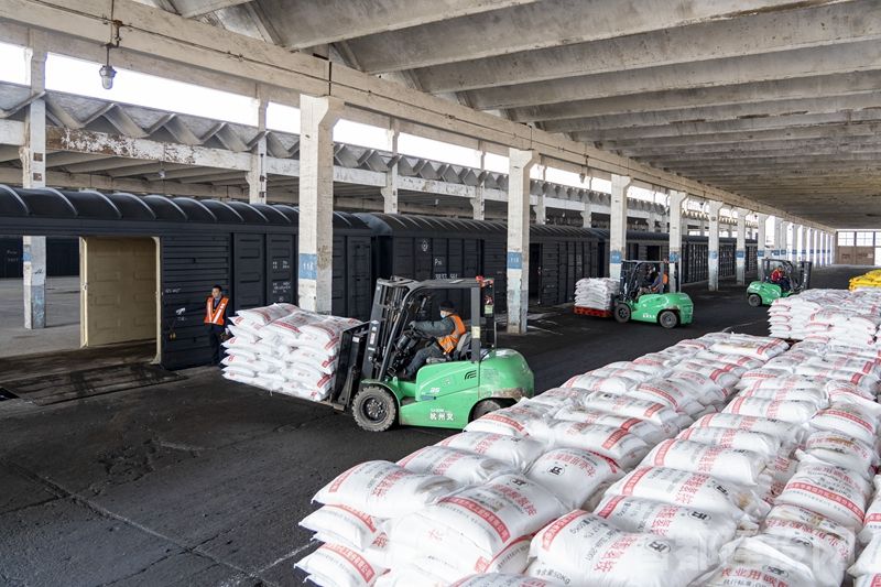春日的华北大地,农机轰鸣、农事正忙,国铁北京局辖区内徐水、衡水、德州、东光等多地铁路货场内更是一派繁忙景象:叉车铁臂挥舞呼呼作响,装卸人员协同作业,一袋袋化肥被精准码放、快速装至短驳车辆,满载春耕物资的汽车鱼贯而出,朝着田间地头疾驰而去……国铁北京局将春耕物资运输保障列为重点工作,全力保障化肥运输畅通,为春耕生产保驾护航。