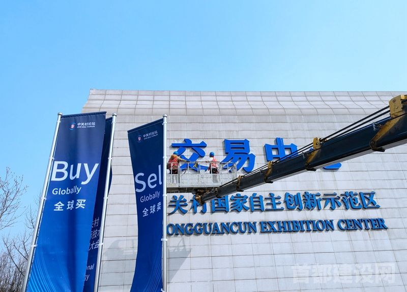 3月21日,位于海淀公园北侧的中关村国家自主创新示范区展示交易中心外墙上,“展示中心”四个大字被工人缓缓拆下。此时,北京建工四建公司中关村国际技术交易中心改造布展采购项目生产负责人马晓帅身旁,崭新的“交易中心”四个大字正静静地等待安装。