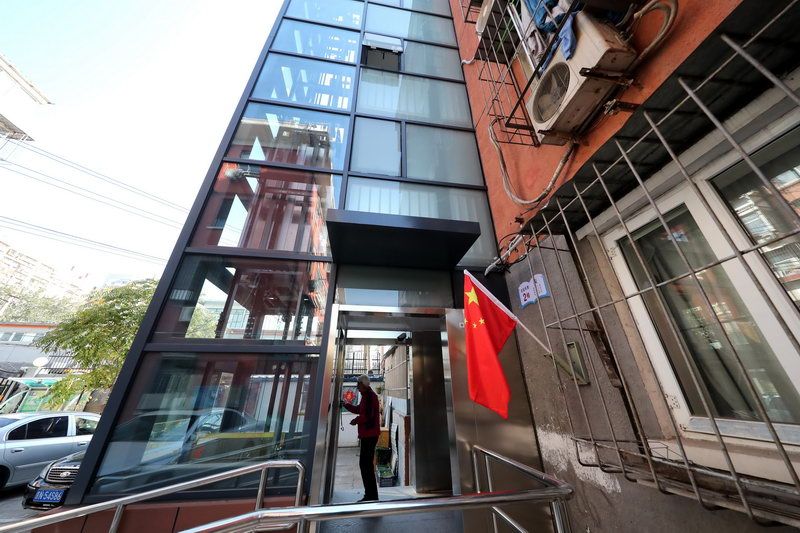 最让居民们开心的是,此次新安装的电梯全部采用平层入户,运行起来又快又稳,噪音很小。“1、2、3号楼采用的是外挂式玻璃幕墙电梯,连廊式设计具备公共走廊的单元,实现了平层入户,这样即使是坐轮椅的居民也可以独自上下楼。”徐辉介绍,电梯虽小,却关系着千家万户的幸福,每一处细节都要用心打磨,考虑到楼里老年人居多,首开房地天宇公司还将单元门口的阶梯改成平缓的无障碍坡道,坡道两侧加装了适宜老年人握持的扶手,单元门前的地面也重新铺好了地板,为居民提供畅通便利的出行环境。