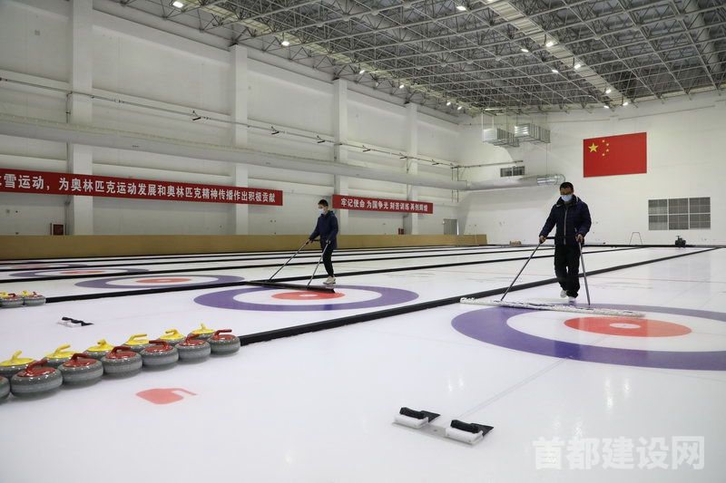 冰壶馆工作人员正在对冰面做维护工作 ■记者 张军/摄
