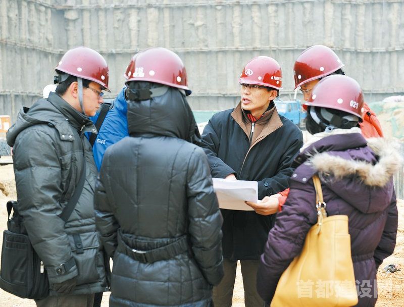 周宏磊(中)在施工现场勘察 ■企业/供图