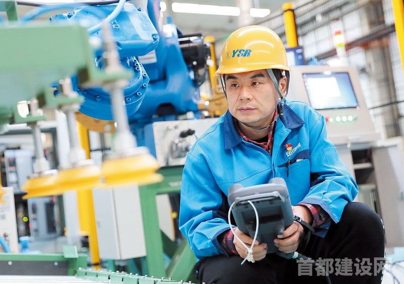 在安川首钢机器人有限公司智能机器人调试车间,一组组大块头的机械手臂运动自如,工程部组装调试科长张明拿着机器人试校盒研究,把每个指令都输入机器人系统,“任何工作都需要潜下心来、踏踏实实,否则想干出成绩是不可能的。”张明说。