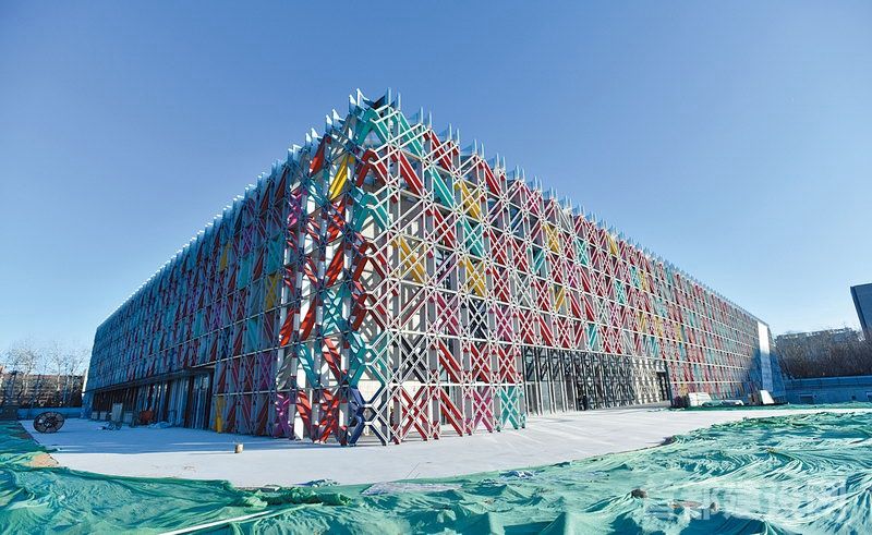五棵松冰上运动中心外幕墙像由无数片五颜六色的雪花构成 ■企业/供图