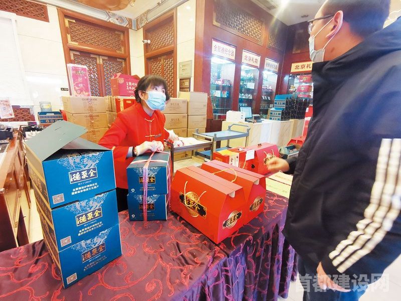 虽然有不少人选择留京过年,但是捎回家年货却不能少,一份代表北京特色的伴手礼成为了大多数人的选择                                                                ■记者 董一鸣/摄