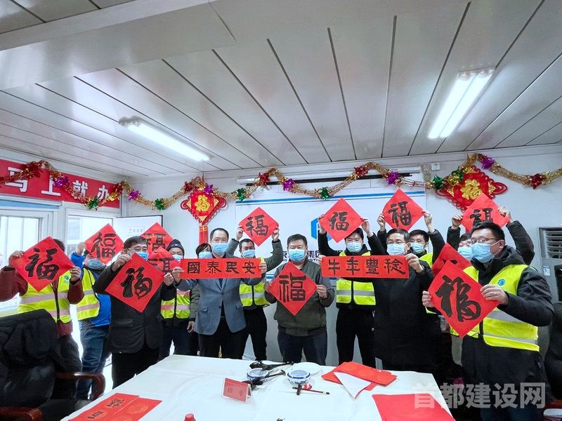写福字、贴春联,作为传统迎春项目。在活动现场,住总集团特别邀请4名住总职工书法家们挥毫泼墨,将对工友们的美好祝福写在春联和一个个“福”字上,送给工友们。负责外幕墙施工的外施职工代表张少杰说:“因为疫情和工作原因,虽然今年不能回家过年,但听说项目部为大家准备了聚餐、看晚会等一系列活动后,内心充满期待。虽然距离除夕还有一段距离,但我感觉项目上的‘年味’比家里还足。”