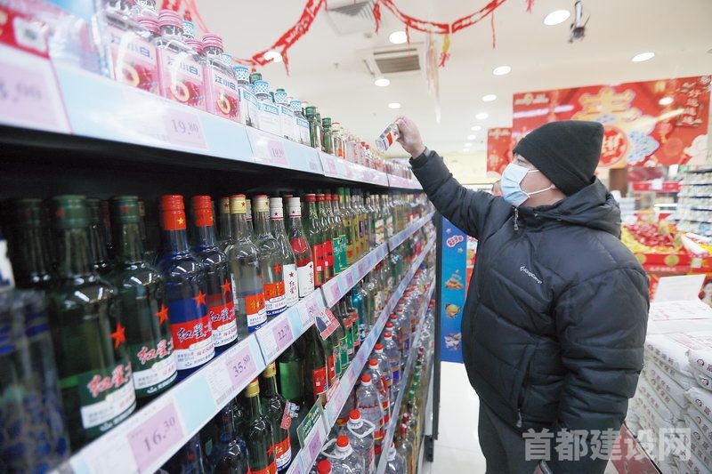 春节临近,酒类市场消费迎来高峰,由于今年在京过年人员比往年多很多,北京的红星、燕京、龙徽等各大品牌都加大了对市场的供应                                     ■记者 周宇杰/摄