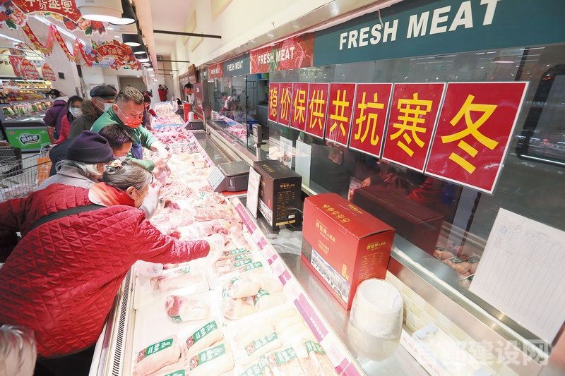 为了保障百姓在京过年的购物需求,北京各大连锁超市加大备货基础,保障供应稳定物价。在首航超市梅源店特别设立保供应柜台,每天各种肉类近1000千克,都是直采供应,利润很薄,并且每隔10天菜果粮油会有25个单品平价销售                                             ■记者 周宇杰/摄