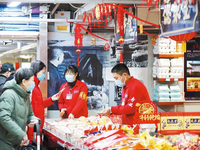 北京城乡购物中心公主坟店里老字号全聚德、丰泽园年味十足,为市民提供年货供应                                                                                   ■记者 张军/摄