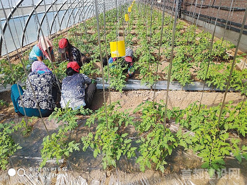 种植基地内,工人正在对番茄吊绳进行规范管理                           ■企业/供图