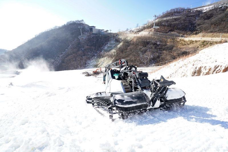 在国家高山滑雪中心,运营团队对雪道进行维护 ■市重大办/供图