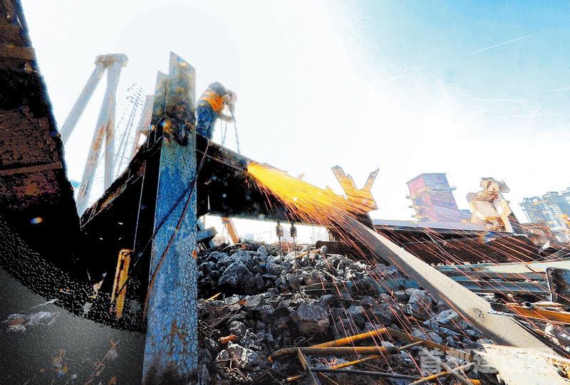 位于首钢园区北区的服贸会项目建设现场,工人正进行相关建筑拆除工作,为后续场馆建设“腾地儿”。