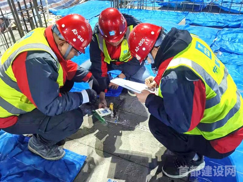 从浇筑前的准备再到混凝土完全成型,整栋楼层全程利用热风炮等升温设备调整温度,并设置专职人员巡视,既保证质量,也保证安全。浇筑后,成立测温小组,温度计、测温枪、智能测温仪等装备齐全。每两小时测温一次,不分昼夜、持续跟踪,直至最后混凝土强度合格。