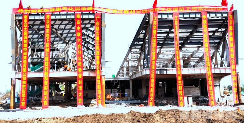由中铁电气化局铁路工程公司南京江宁开发区基建工程项目部承建的南京市六合区龙袍新城“四新”建设项目——渡江胜利纪念公园主体建筑钢结构工程4月6日顺利封顶。