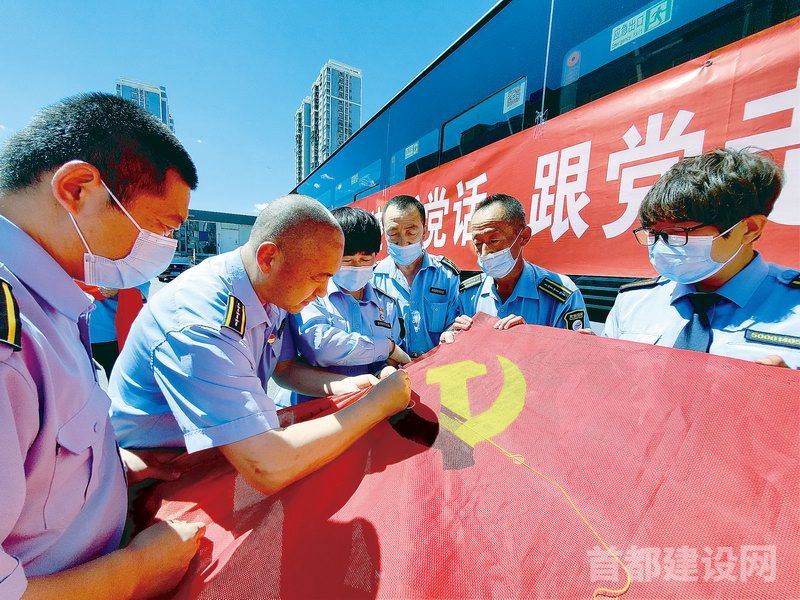 各车队工会组织各岗位职工接力传递绣党旗,用一针一线绣出北京公交人爱党爱国情怀,为中国共产党成立100周年送上最真挚的祝福。以车队、班组为单位开展“颂歌献给党”职工唱红歌活动,表达北京公交职工对党的热爱和祝福。开展“守红色根脉悟红色真理 永远跟党走”劳模先进宣讲活动,讲述在党的领导下立足本职,不懈奋斗的个人故事。