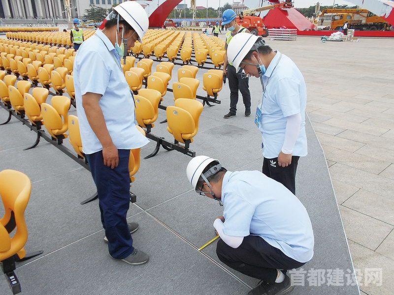“为有效控制运输时间,长安街上的铝合金平台和座椅提前运到了离广场比较近的两个中转站,最远10分钟路程就能到达长安街。”夏春信介绍,为保证安装和拆除有序进行,我们把长安街座椅区域划分成12个模块,每个模块施工方和监理都派出专人结对进行模块管理,对质量、安全和进度检查把关,发现问题立即交由施工单位整改,有效保证了整个安装和拆除过程紧张有序展开。