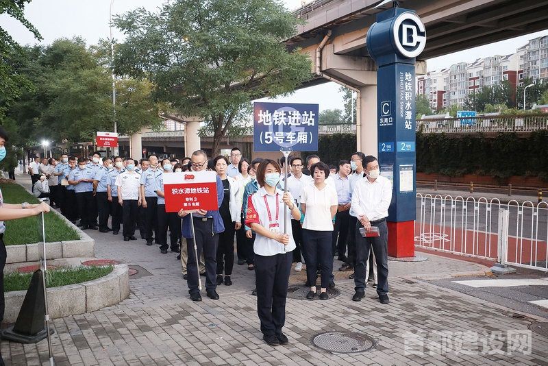 7月1日10:48 积水潭站保障人员高举指示牌,引导参加庆典人员疏散出站 ■企业/供图