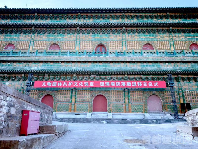 近日,由北京市文物局、园林绿化局与公园管理中心联合主办的北海公园琉璃阁院落腾退移交仪式成功举办,这意味着拥有400多年历史的北海“西天梵境”将恢复其完整风貌。据了解,琉璃阁腾退移交北海公园,是首都功能核心区第二批文物腾退保护利用项目首个标志性成果。琉璃阁院落是北海公园“西天梵境”建筑群的重要组成部分,位于第三进院落,建筑依次为重檐歇山华严清界殿、重檐攒尖七佛塔亭、三覆檐歇山琉璃阁。其中,琉璃阁建于乾隆二十四年(1759年),七佛塔亭建于乾隆四十二年(1777年),二是均是清代中期皇家园林建筑营造的典范,是中华民族多元一体、文化交融的重