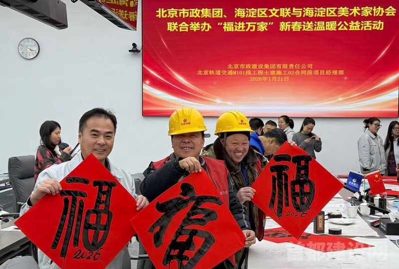北京市政集团迎新春送温暖 近日,北京建工市政集团第四工程处地铁M101线02标项目部内暖意融融,北京市政集团、海淀区文学艺术界联合会、海淀区美术家协会联合举办的“福进万家”新春送温暖公益活动在此温情开幕。本次活动,共有海淀文联、海淀美术家协会的十一位艺术家出席。活动现场,笔墨为媒,文化作桥,艺术家们将新春祝福凝于笔端,为奋战在一线的市政建设者们送上最具温度的“文化年货”,让寒冬里的工地充盈着浓浓的年味儿与人文关怀。“自2017年结为文化共建友好单位以来,我们与海淀文联的情谊已走过九个春秋。”活动现场,北京市政集团四处党委副书记黎新征的话语,描绘出双方九年共建的 新闻 2026年01月27日 0 点赞 0 评论 6 浏览
