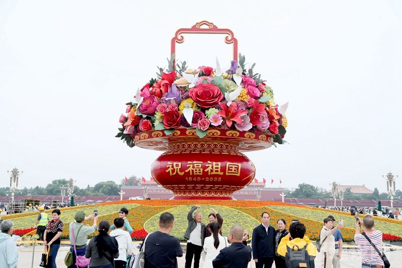 “祝福祖国”巨型花篮亮相天安门广场 随着国庆节的脚步临近,9月22日凌晨,万众瞩目的天安门广场“祝福祖国”巨型花篮完成主体结构合拢,和平繁花初绽芳颜。本次花卉布置工作于9月16日凌晨启动,北京城建集团旗下园林集团花木公司施工团队轮班作业,主要吊装工作均在夜间进行,高质量地完成各项任务。花坛顶高18米,“祝福祖国”巨型花篮的篮体高16米,篮盘直径12米。在“祝福祖国”巨型花篮的篮体南侧书写“祝福祖国,1949-2025”字样,在篮体北侧书写“欢度国庆,1949-2025”字样。篮内选用荷花、月季、橄榄枝等美好寓意的花卉植物,象征和平、团结与幸福,并融入发光和平鸽元素,体现 要闻 2025年09月25日 1 点赞 0 评论 73 浏览